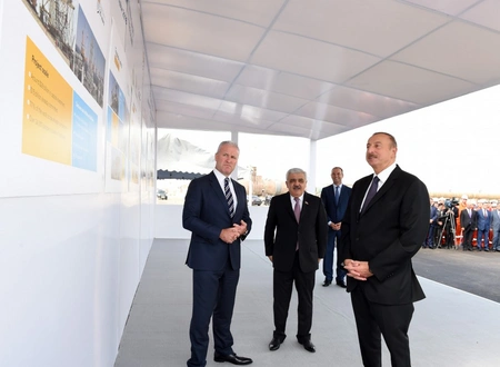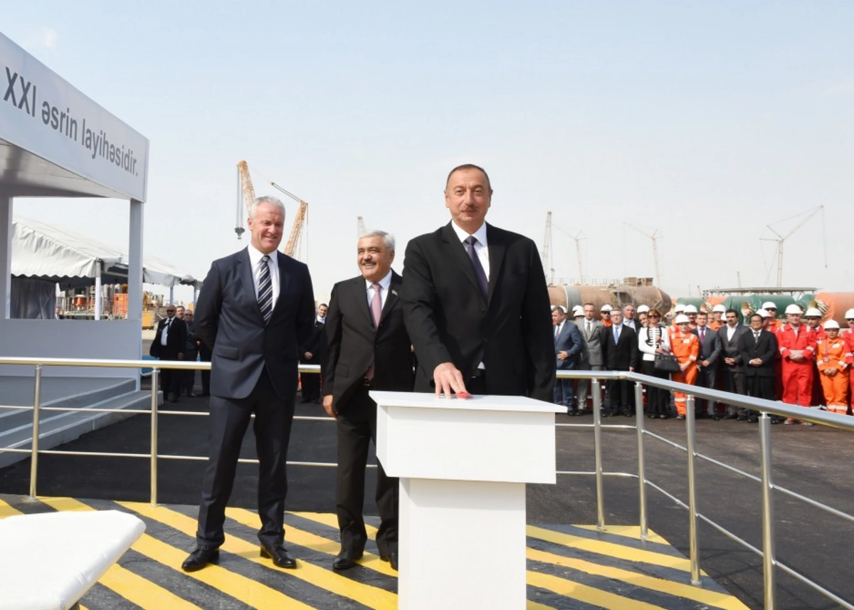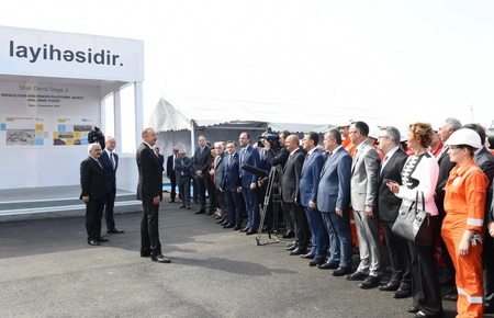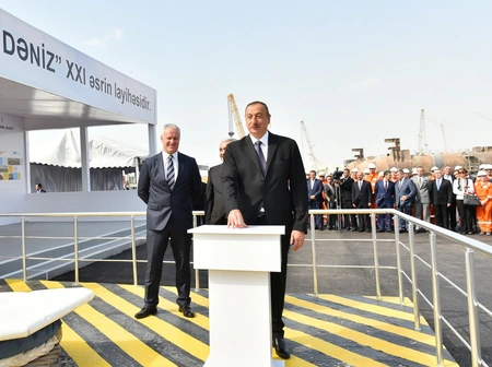 President Ilham Aliyev pressed the button to start the sail away of the jacket.