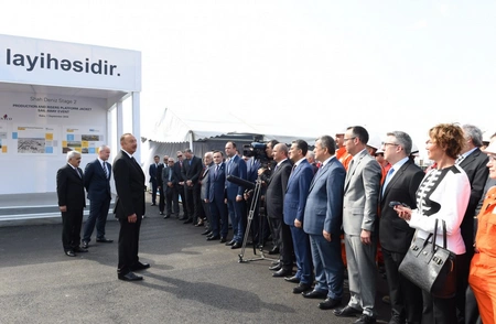 Baku. 1 September. REPORT.AZ/ President of the Republic of Azerbaijan Ilham Aliyev has attended Shah Deniz Stage 2 Production and Risers Platform Jacket Sail Away Event at the Heydar Aliyev Baku Deepwater Jackets Factory (BDJF).