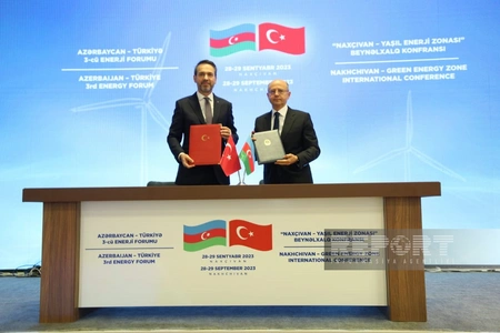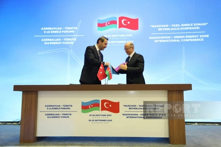 Azerbaijani Energy Minister Parviz Shahbazov and Turkish Minister of Energy and Natural Resources Alparslan Bayraktar signed the Protocol of the 3rd Azerbaijan-Türkiye Energy Forum held today in Nakhchivan, Report informs.