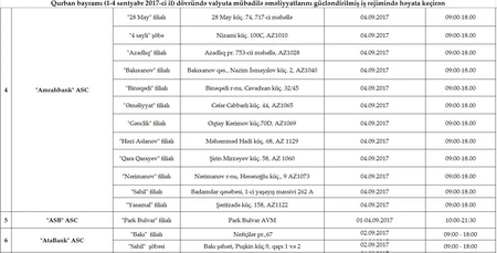 Baku. 28 August. REPORT.AZ/ With a recommendation of the Financial Market Supervisory Authority (FIMSA), branches and departments of several banks will work in enhanced regime in order to provide population and numerous tourists enjoy banking services during non-working days during Eid al-Adha (Sacrifice Feast).