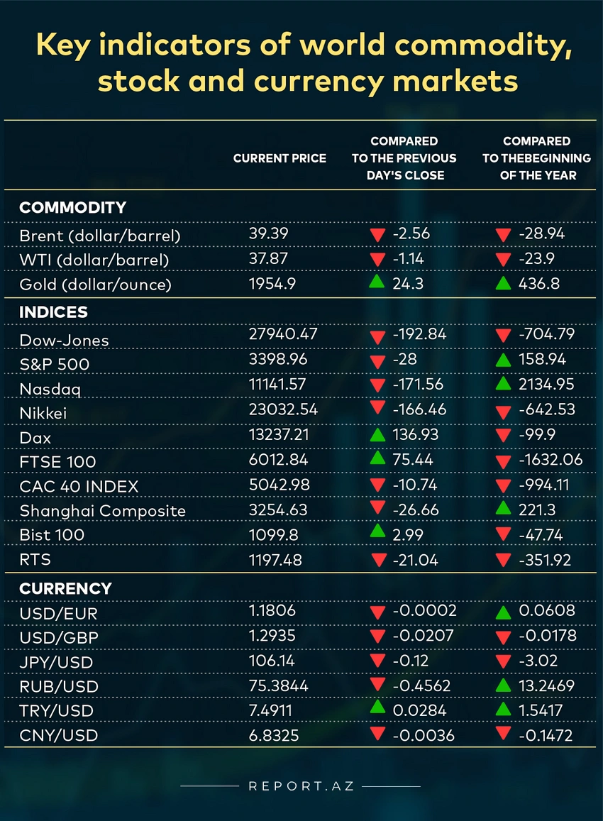 Key indicators of world commodity, stock and currency markets (10.09.2020)