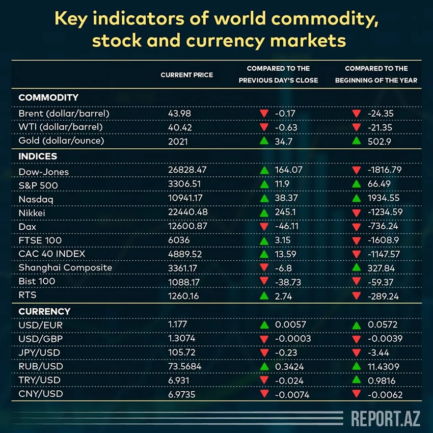Key indicators of world commodity, stock and currency markets (05.08.2020)
