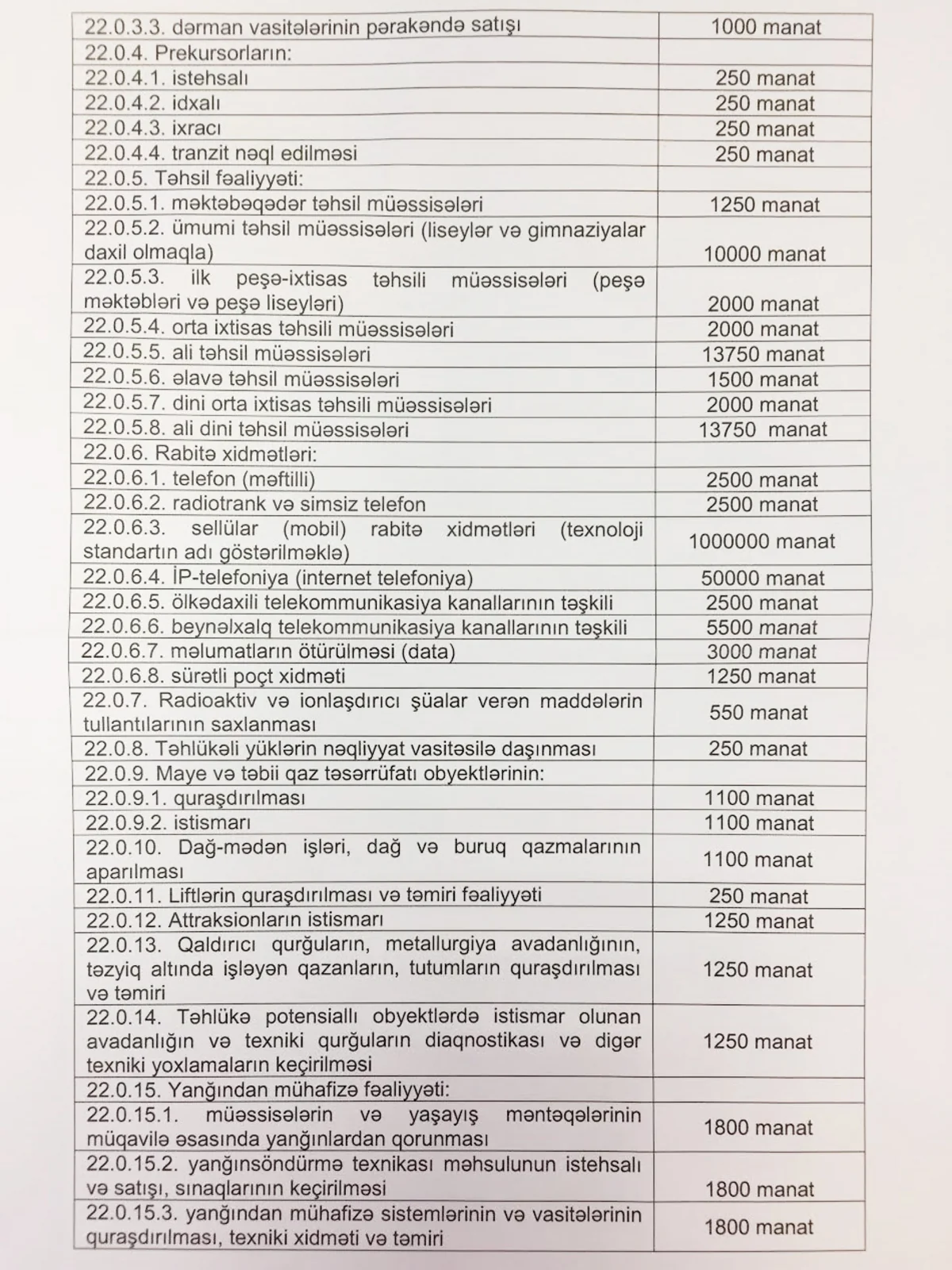Report informs, the draft envisages change in the amount of the state duty for licenses. It was stated that earlier, state duty didn't exceed 22 000 AZN, however, now the draft mentions state duty in the amount of 1 mln AZN.