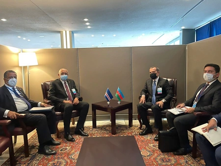 Within the 76th session of the UN General Assembly, Azerbaijani Foreign Minister Jeyhun Bayramov has held bilateral meetings with Madagascar Foreign Minister Patrick Rajoelina, Nicaraguan Foreign Minister Denis Moncada Colindres, and Cape Verde's Foreign Minister Rui Figueredo Soares, members of the Non-Aligned Movement (NAM), Report informs, citing the Foreign Ministry.