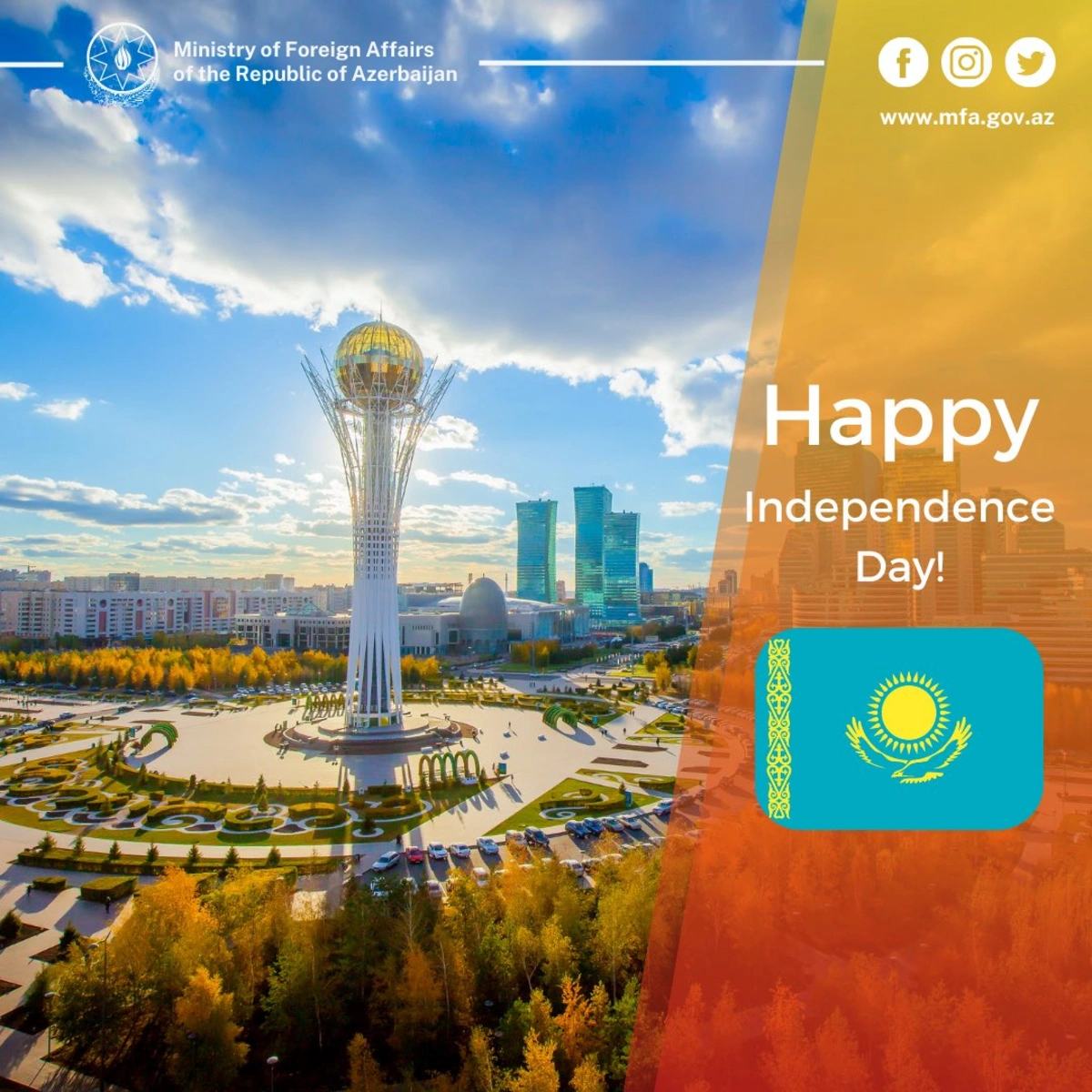 “We congratulate brotherly Kazakhstan and its people on the occasion of the Independence Day of the Republic of Kazakhstan!