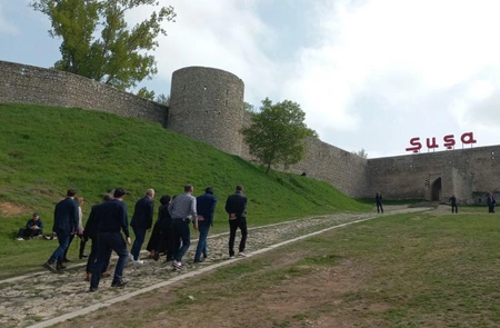 During the Shusha tour, the delegation familiarized themselves with the city's sights, as well as with the ongoing restoration work.