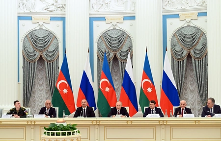 Today, we discussed the realization of many plans related to our cooperation, which has been implemented for more than two years within the framework of allied interaction between us. Of course, the Heydar Aliyev factor always played and will always play an important role in our interstate relations, because during his years in this building in Moscow, in the Kremlin, he made tremendous efforts to contribute to the development of the Soviet state and the sphere he was entrusted with. One of them was the transportation sphere.