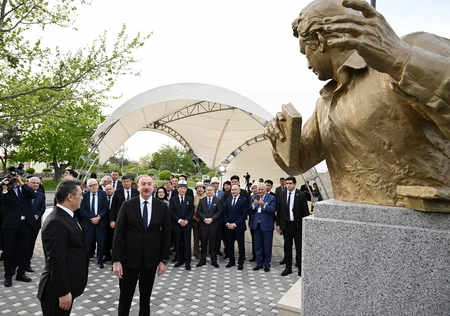 The President of the Republic of Azerbaijan, Ilham Aliyev, and the President of the Kyrgyz Republic, Sadyr Zhaparov, have attended an unveiling ceremony of a monument to prominent Kyrgyz writer, Chingiz Aitmatov, in Baku, Report informs, citing AZERTAC.