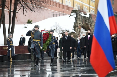 President of the Republic of Azerbaijan Ilham Aliyev visited the grave of an unknown soldier in the Alexander Garden in Moscow on February 22, Report informs.