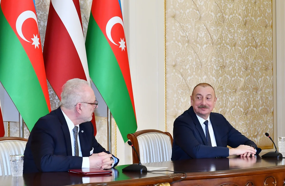 The President of the Republic of Azerbaijan, Ilham Aliyev, and the President of the Republic of Latvia, Egils Levits, have made press statements, Report informs via AZERTAC.