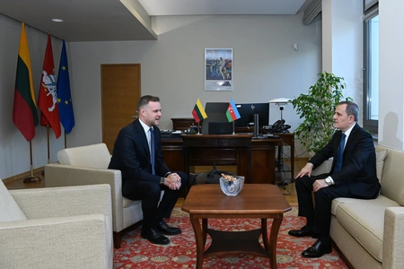 "Happening now: Gabrielius Landsbergis, Minister of Foreign Affairs of the Republic of Lithuania welcomes Jeyhun Bayramov, Minister of Foreign Affairs of the Republic of Azerbaijan within the official visit to Lithuania," the Foreign Ministry said.