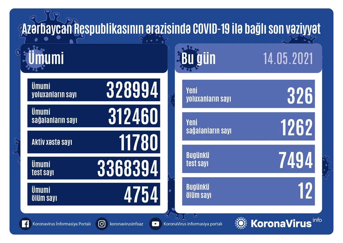 Azerbaijan has conducted 3,368,394 coronavirus tests over the past period, including 7,494 today.
