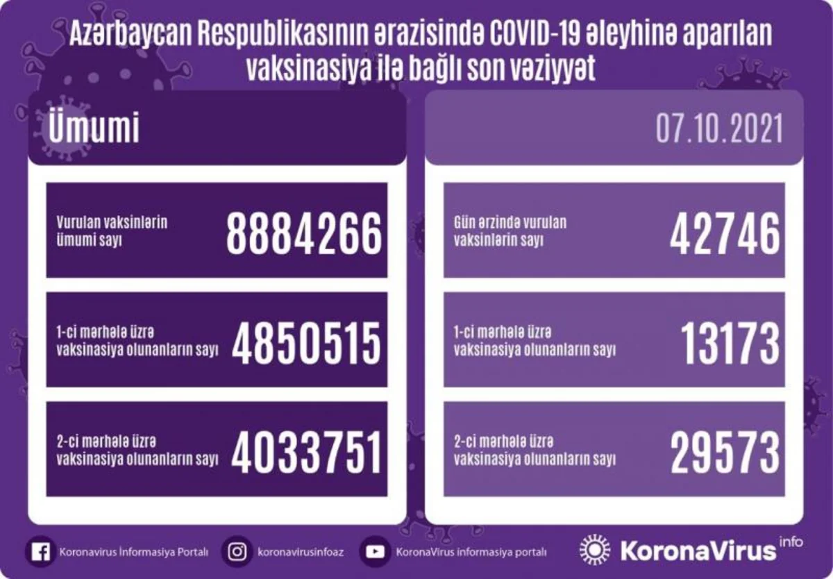 Azerbaijan vaccinates 42,746 people on Oct 7