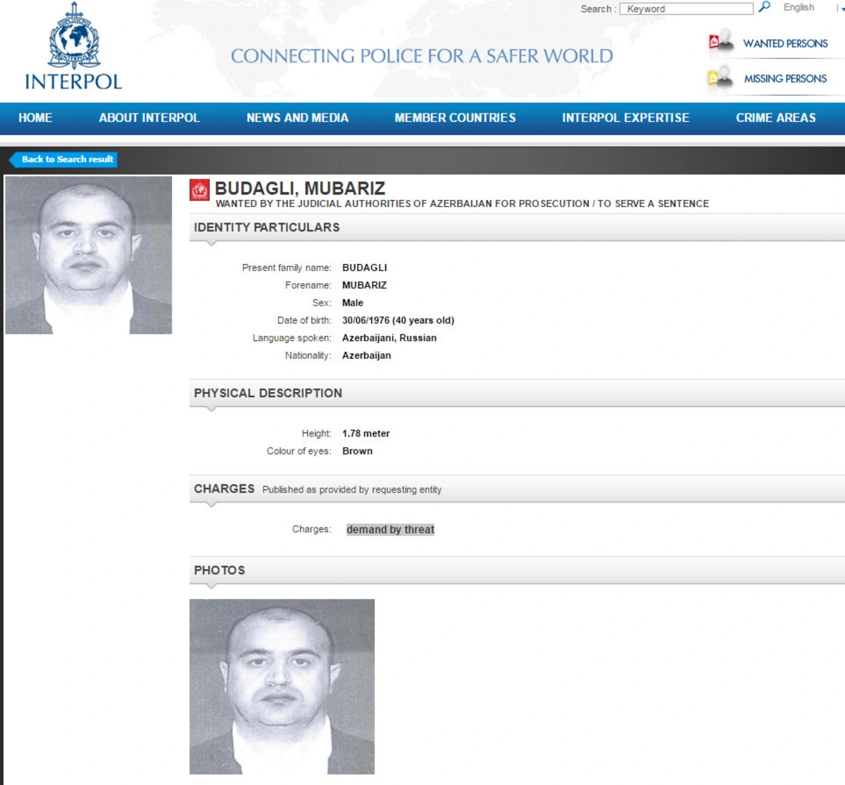 Azerbaijan includes another person to international wanted list