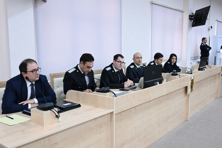 Continuing the announcement of charges, the Chief Prosecutor's Senior Assistant Vusal Aliyev, along with state prosecutors Fuad Musayev, Vusal Abdullayev, and Tarana Mammadova, presented facts about the mining of Azerbaijan's sovereign territories when occupied by the Armenian state and the continuation of military aggression through this means. It was particularly emphasized that some of the mines buried in the occupied territories were manufactured in Armenia.