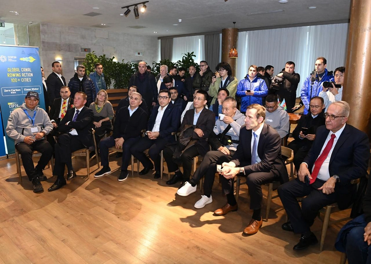 The action, themed “Row in Clean Water!” was attended by Jean-Christophe Rolland, President of the International Rowing Federation (FISA), Thomas Konietzko, President of the International Canoe Federation, Claudio Schermi, President of the International Dragon Boat Federation and over 50 honorary guests visiting Azerbaijan for COP29.