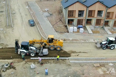 Currently, the construction of communication lines along city streets in the first phase - water, sewage, rainwater, gas, communication, and electricity lines - is almost complete. For this purpose, pipes of various diameters and technical wells are being installed, and work on laying curbs and pavement stones is being carried out.