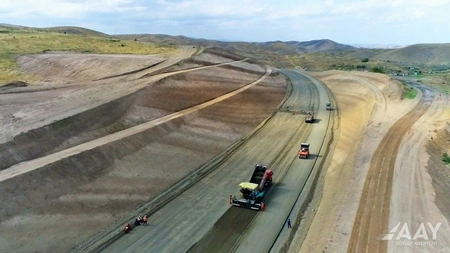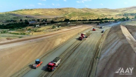 The construction of the Fuzuli-Hadrut highway, one of the road infrastructure projects implemented in the Karabakh and East Zangazur economic regions and playing an important role in the socio-economic development of the liberated Azerbaijani territories, continues at a rapid pace and is at the final stage, Report informs.