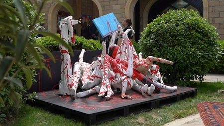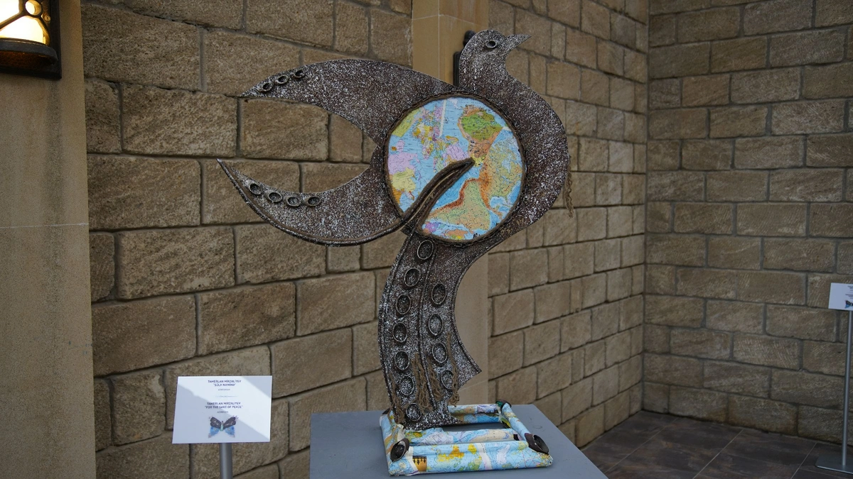 At the current exhibition, held under the slogan “Create for Peace,” 12 foreign and 18 local artists from nine countries showcased art made from waste and items considered unnecessary.