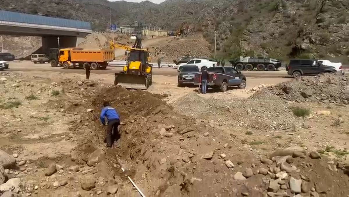 The employees of the Agency arranged a catchment device in the bed of the Hakari River, built a 200-meter-long polyethylene pipeline to carry water from here to the checkpoint, and installed a hydrophore. Currently, the border checkpoint is uninterruptedly provided with potable water.