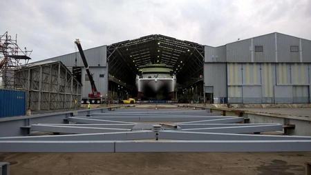 Report informs referring to the Caspian Marine Services, contract for the construction of the vessel was signed in June 2015. Construction started in October 2015 in parallel to the two shipyards. The front of the hull is made in the Balamban shipyard (Philippines), and the aft part of the hull built in Australia.