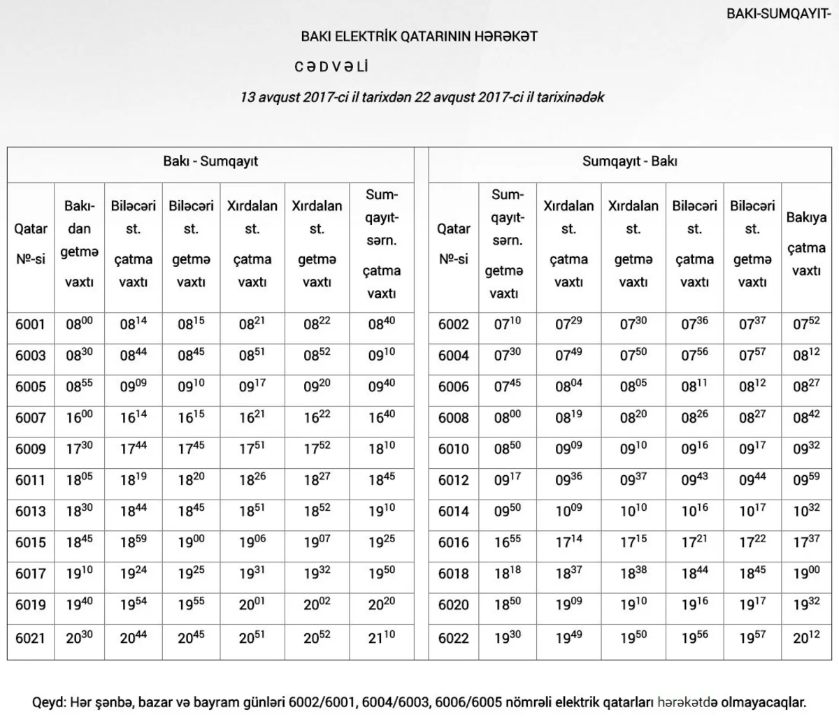 It is possible to find further information about the changes in schedule of Baku-Sumgayit-Baku trains on www.ady.az.