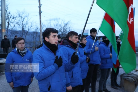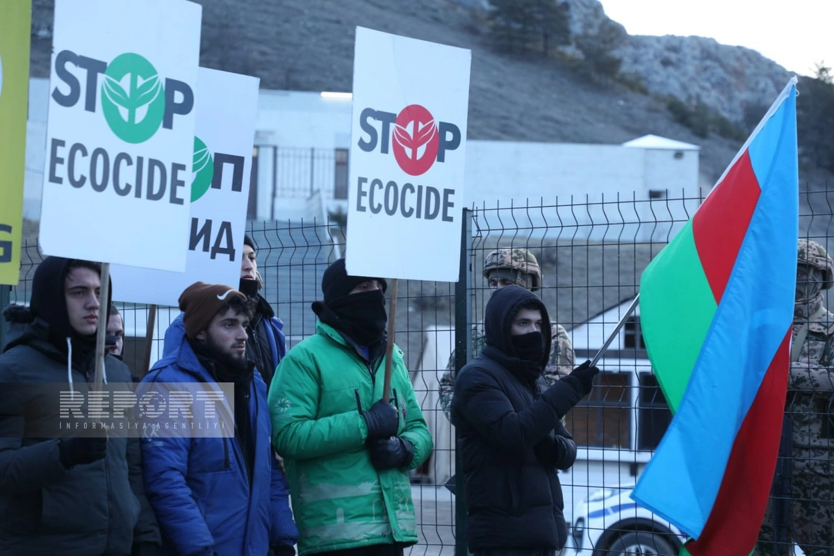 The demonstrations are being held by Azerbaijani activists and members of environmental non-governmental organizations (NGOs) on the part of the road under the control of Russian peacekeepers in Shusha, demanding an end to ecological terrorism in the Karabakh economic region.