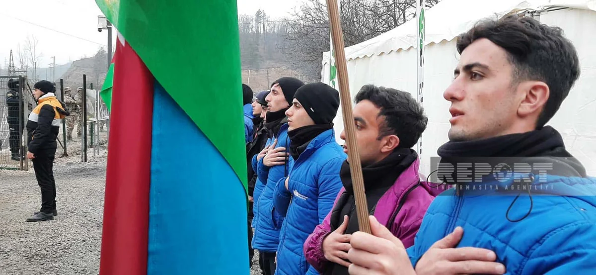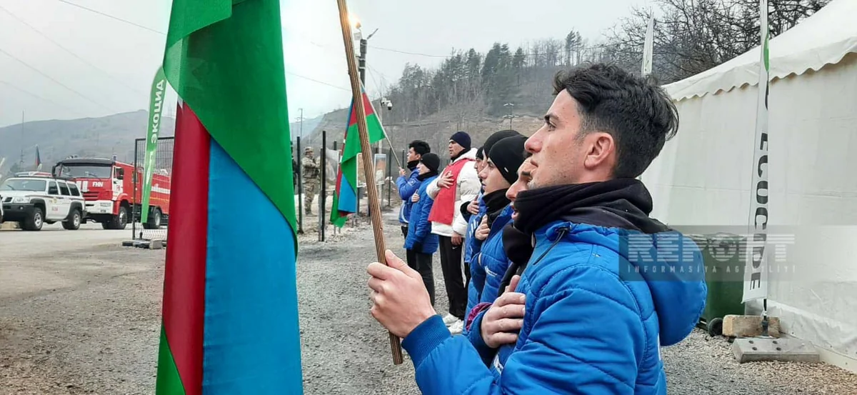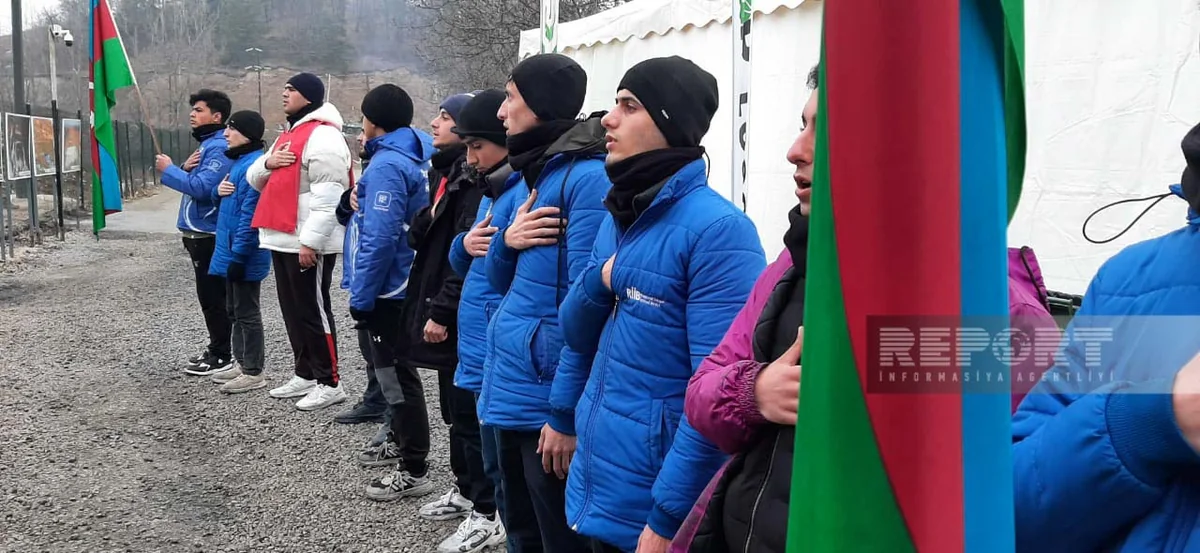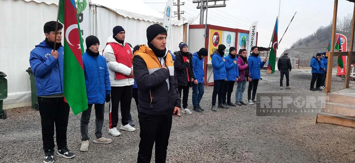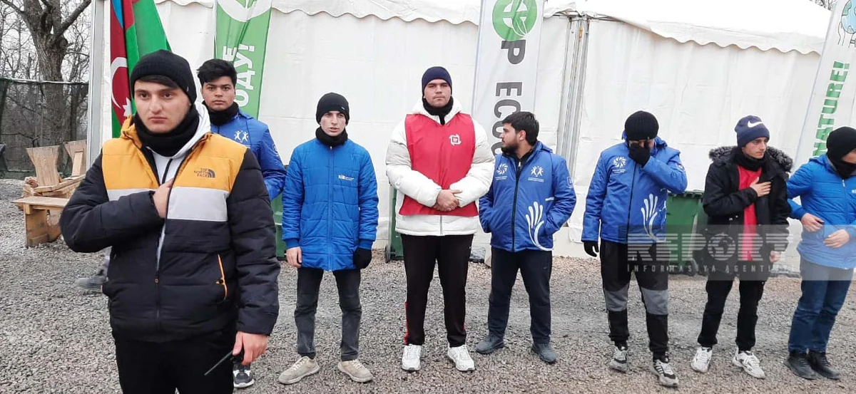 Volunteers and representatives of NGOs taking part in the action chant slogans: "Azerbaijan is the owner of its mineral resources!", "End environmental crimes!", "Stop eco-terror!", "Protect nature!", "No to ecocide! Yes to monitoring."