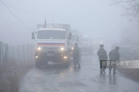 The protesters on the Shusha-Khankandi road created conditions for the movement of 5 supply vehicles of the Russian peacekeepers, Report informs.