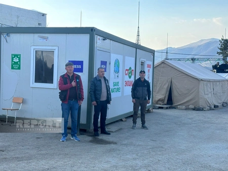 Volunteers and representatives of NGOs taking part in the action chant slogans: "Azerbaijan is the owner of its mineral resources!", "End environmental crimes!", "Stop eco-terror!", "Protect nature!", "No to ecocide! Yes to monitoring." They do not hinder the movement of vehicles on the road.