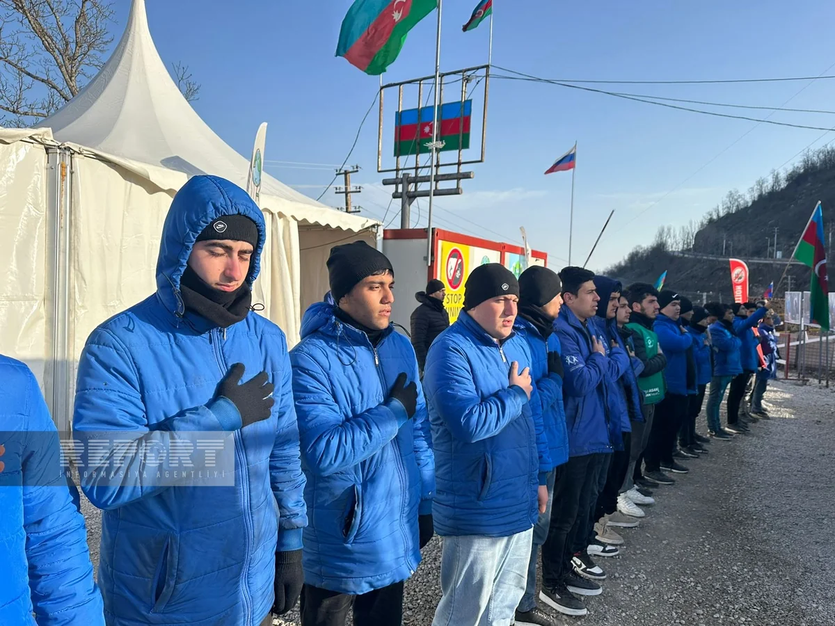 Volunteers and representatives of NGOs taking part in the action chant slogans: "Azerbaijan is the owner of its mineral resources!", "End environmental crimes!", "Stop eco-terror!", "Protect nature!", "No to ecocide! Yes to monitoring." They do not hinder the movement of vehicles on the road.