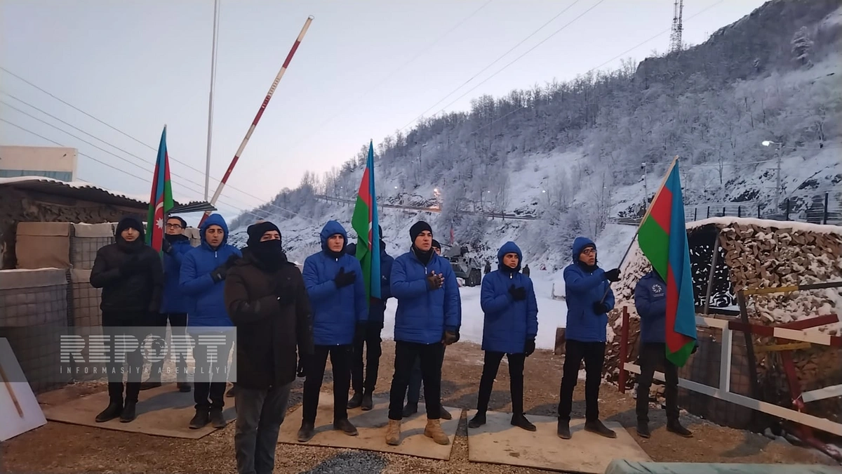 Despite the frosty weather, eco-activists are raising posters written in Azerbaijani, Russian, and English on both sides of the road and chanting slogans without hindering the movement.