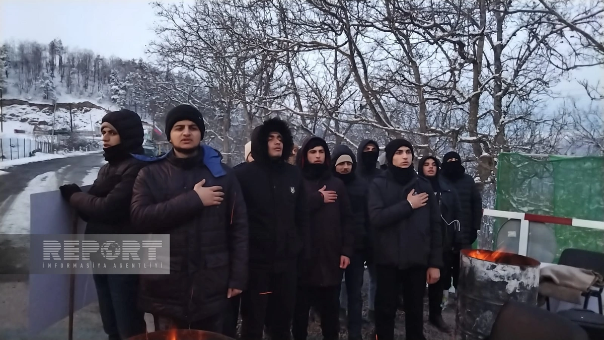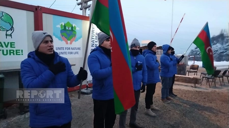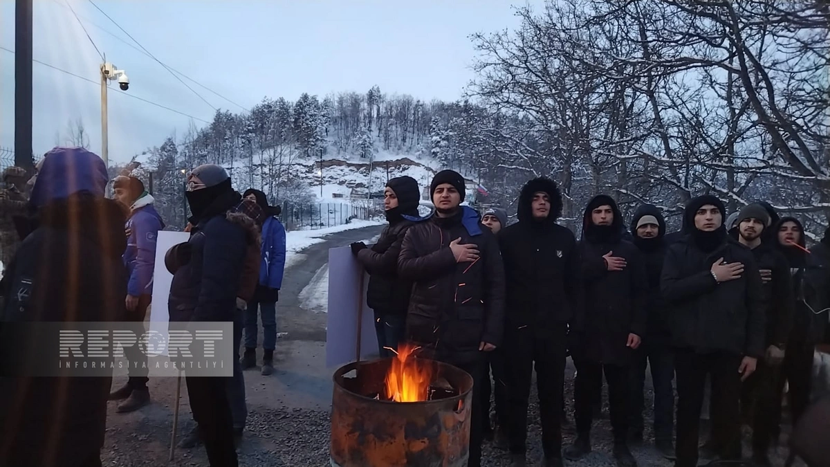 Although the weather is cold and frosty, the protest on the Khankandi-Lachin road against the illegal exploitation of mineral deposits in the Karabakh economic region of Azerbaijan continues for the 35th day, Report informs.
