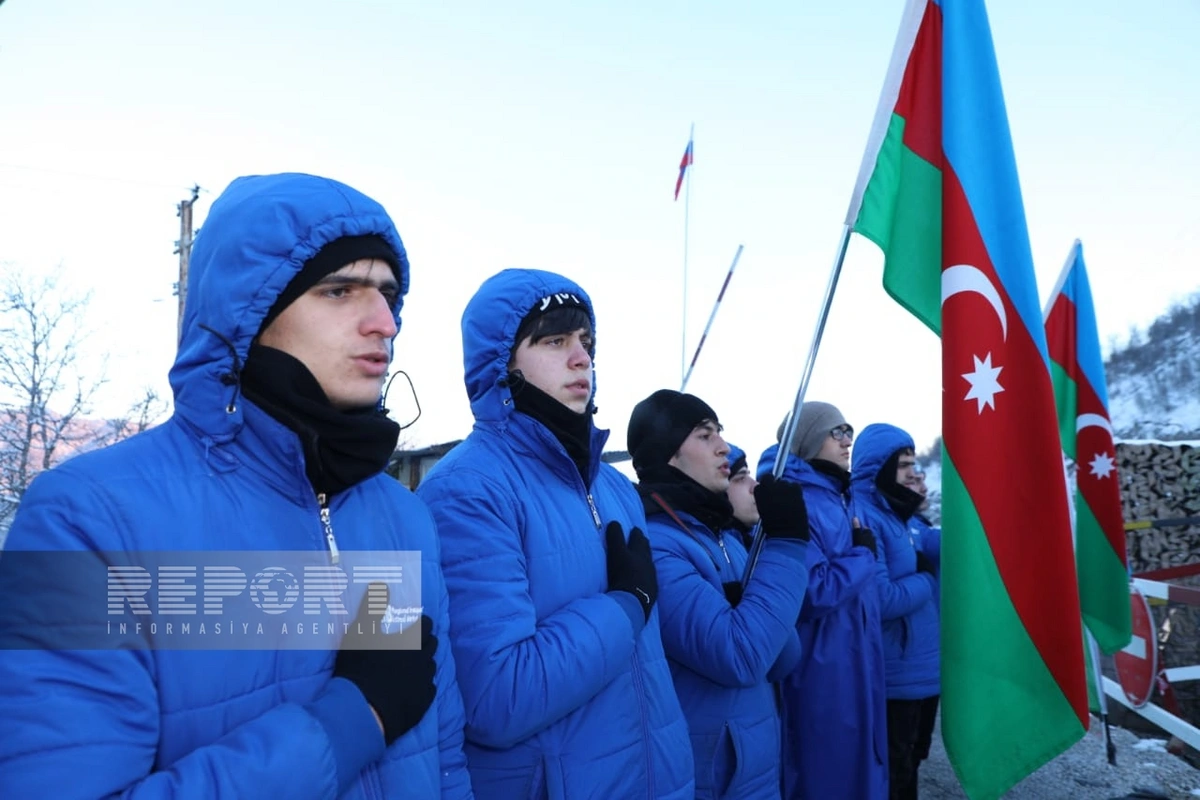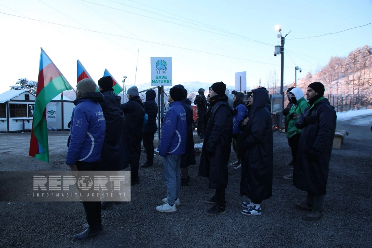 Although the weather is frosty, the protest on the Khankandi-Lachin road against the illegal exploitation of mineral deposits in the Karabakh economic region of Azerbaijan continues for the 64th day, Report informs.