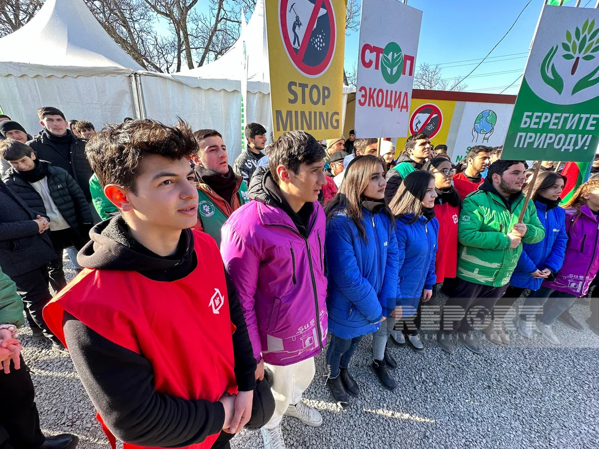 According to Report’s employee working at the scene, the protesters demand to put an end to ecoterror on Azerbaijani territory.