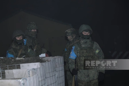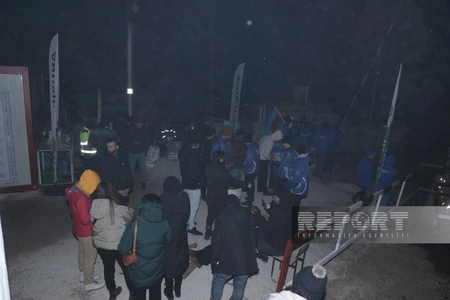 Despite the cold weather, the protest against the illegal exploitation of mineral deposits in the Karabakh economic region of Azerbaijan continues in the evening on the Khankandi-Lachin road, Report informs.