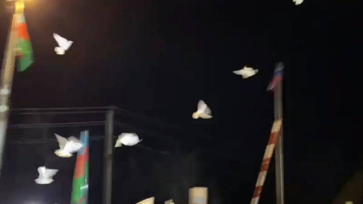 Protestors on Shusha-Khankandi road release doves into air