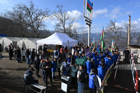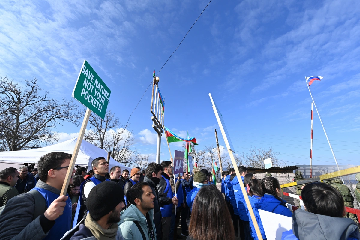 Demonstrations are being held by Azerbaijani activists and members of environmental non-governmental organizations (NGOs) on a part of the road under the control of Russian peacekeepers in Shusha, demanding an end to ecological terrorism in the Karabakh economic region.