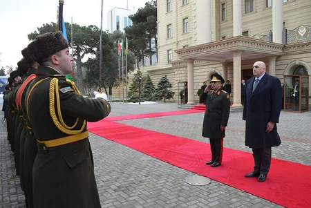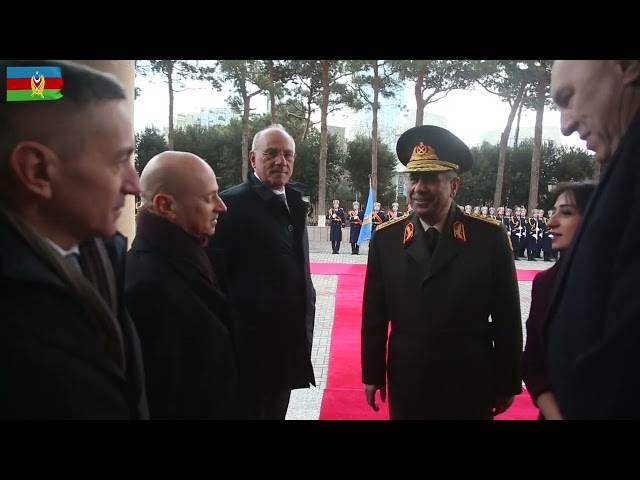First, a solemn welcoming ceremony was held at the Ministry of Defense. The defense ministers of both countries passed along the guard of honor, and the national anthems of Azerbaijan and Italy were performed.