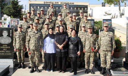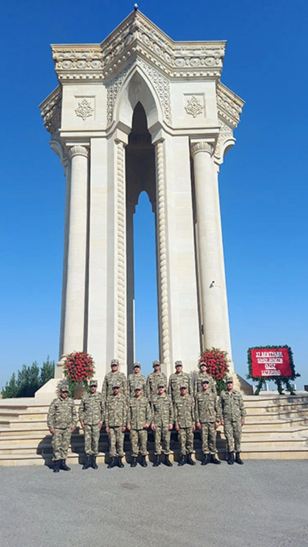 According to the plan, the military personnel visited the Alleys of Shehids, laid flowers at the graves of Shehids, who sacrificed their lives for the sovereignty, territorial integrity and independence of Azerbaijan, and honored their memory. The National Anthem of the Republic of Azerbaijan accompanied by the military orchestra was performed.