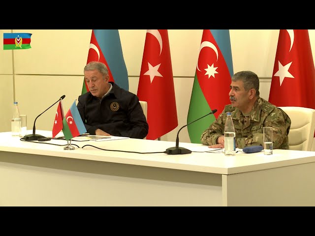 The Minister of Defense of the Republic of Azerbaijan, Colonel General Zakir Hasanov, and the Minister of National Defense of the Republic of Turkey, Hulusi Akar, held a joint press conference at the Heydar Aliyev Center in Baku, Report informs, citing the Azerbaijani Defense Ministry.