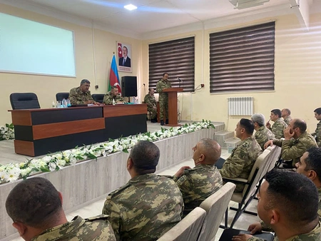 According to the training plan approved by the Defense Minister of Azerbaijan Zakir Hasanov, a final meeting on the results of the first quarter of the 2022 training year was held in the military unit stationed in Lachin, Report informs, citing the Azerbaijani Defense Ministry.