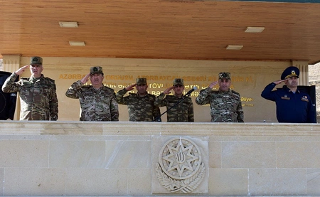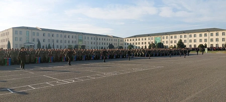 First the memory of the National Leader Heydar Aliyev, and Shehids (Martyrs), who sacrificed their lives for the territorial integrity of Azerbaijan, was honored with observing a minute of silence. Then the National Anthem of the Republic of Azerbaijan was performed. The young soldiers solemnly took the military oath and promised to be loyal to the Motherland.