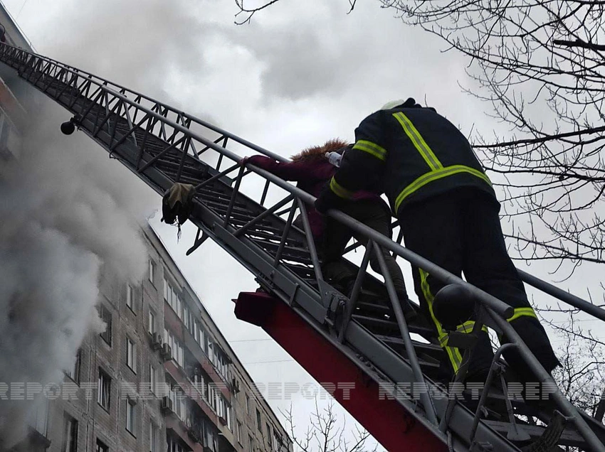Report's Eastern European bureau said eight missiles were fired to the area today, with two hitting a residential building.