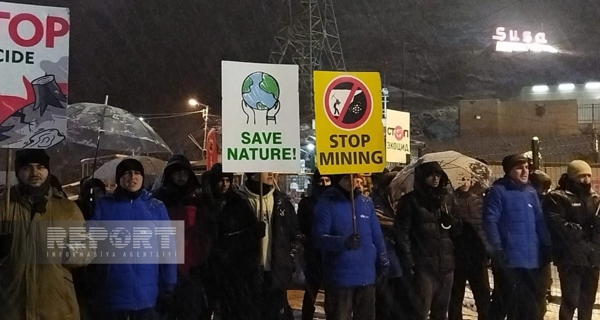 Despite the current frosty weather, eco-activists raise posters written in Azerbaijani, Russian and English on both sides of the road and chant slogans without obstructing the movement.