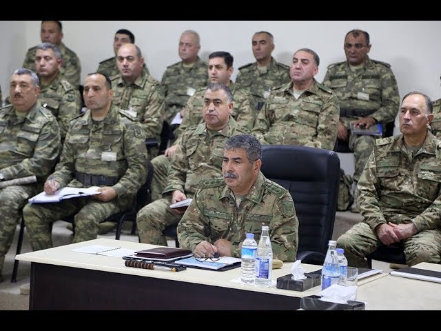 During the meeting held under the leadership of the Minister of Defense Colonel General Zakir Hasanov, the episodes have been worked out on the complex mountainous-relief terrain model board.