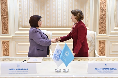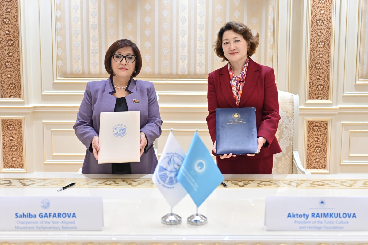 The document was signed by Sahiba Gafarova, Speaker of the Milli Majlis and Chairwoman of the Non-Aligned Movement Parliamentary Network, and Aktoty Raimkulova, President of the Turkic Culture and Heritage Foundation.