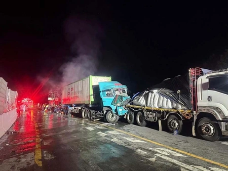 Pol Lt Col Siwaphas Phuripaschaiboonchu, inspector at Wang Khondaeng police station, said the bus was travelling from Nong Khai to Rayong. It rear-ended the two trucks on hilly highway 304 in Na Di district around 2 am local time.
