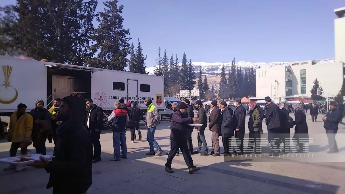 According to Report's employee dispatched to Turkiye, warm clothes, bed linen, shoes, socks, and children's clothes are distributed at Milli Irade Square.