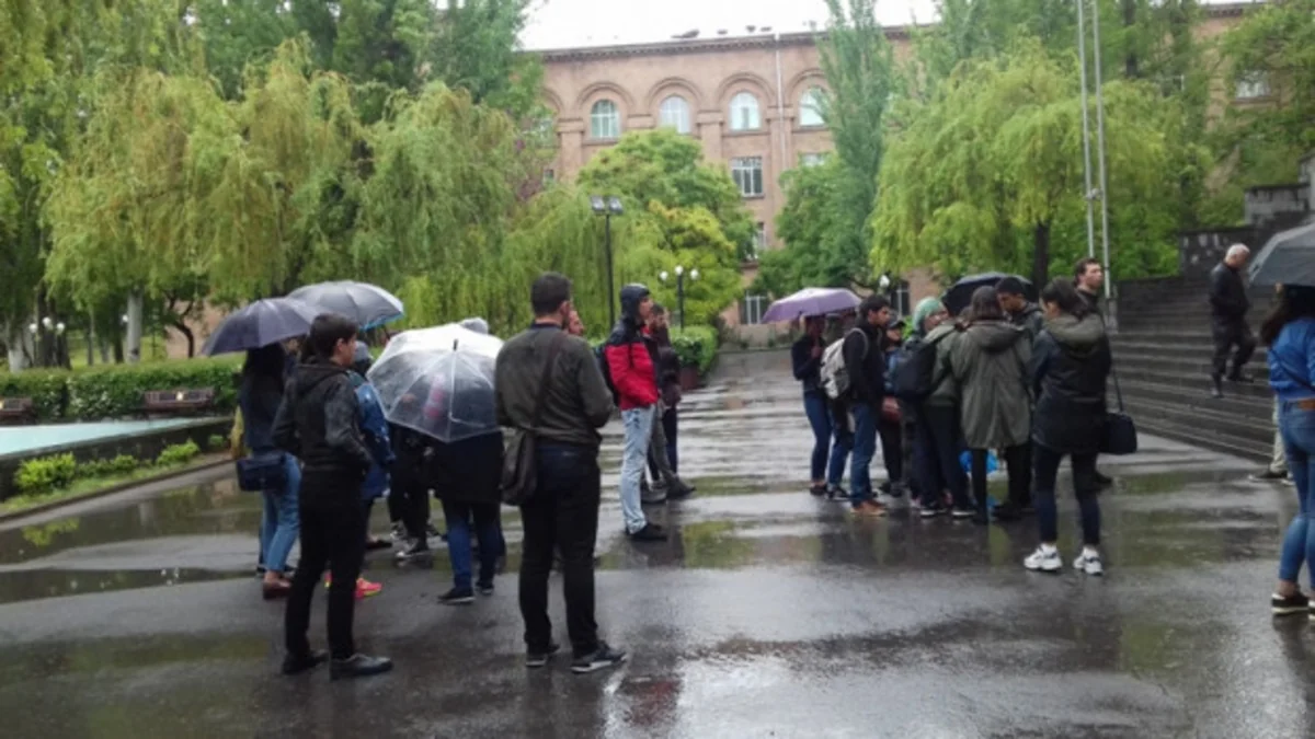 Baku. 13 April. REPORT.AZ/ A group of students from Yerevan State University went on strike against nomination of Serzh Sargsyan for candidacy of prime minister post.